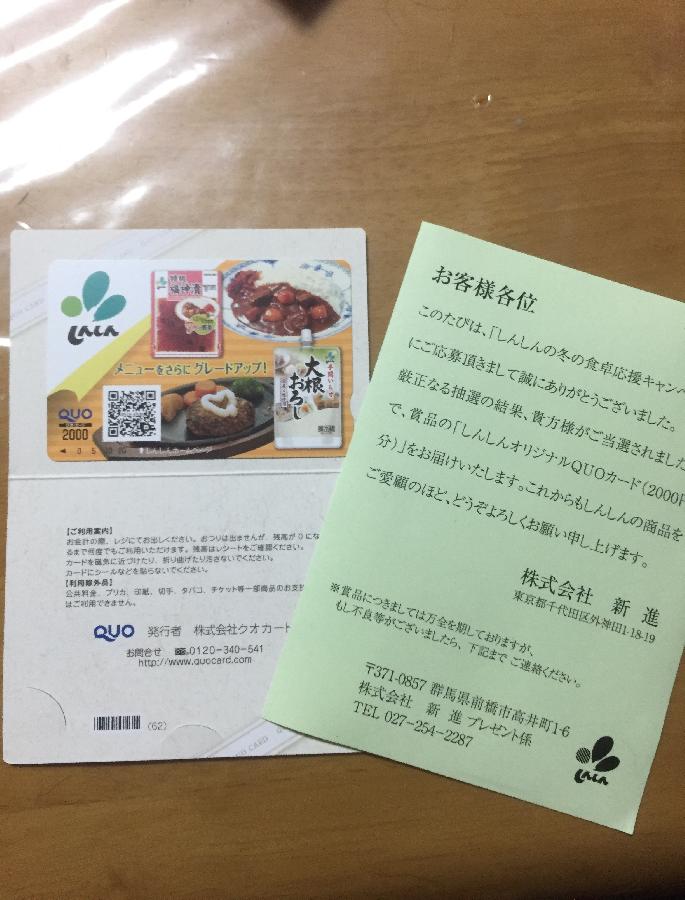 オリジナルQUOカード 2000円分