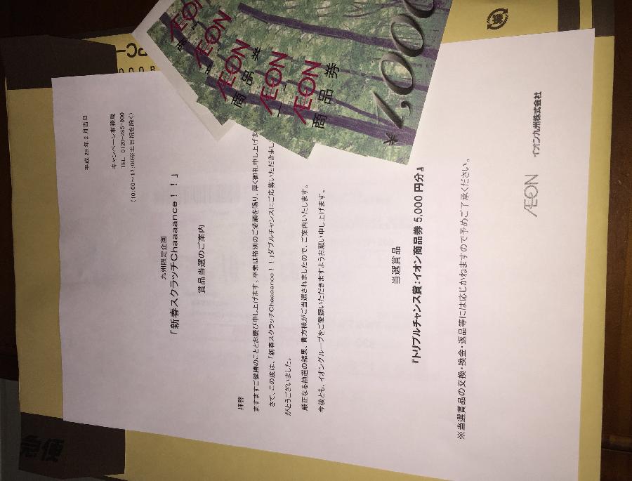 トリプルチャンス賞 イオン商品券5,000円分