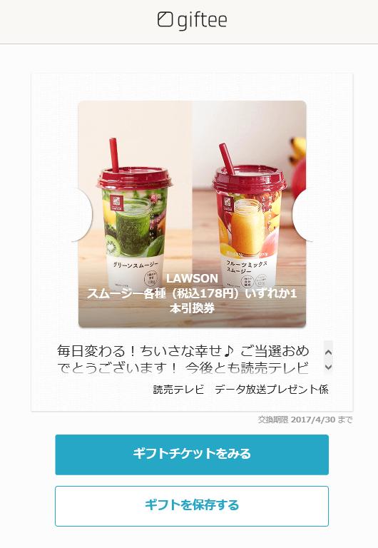 LAWSON スムージー各種(税込178円)いずれか1本引換券